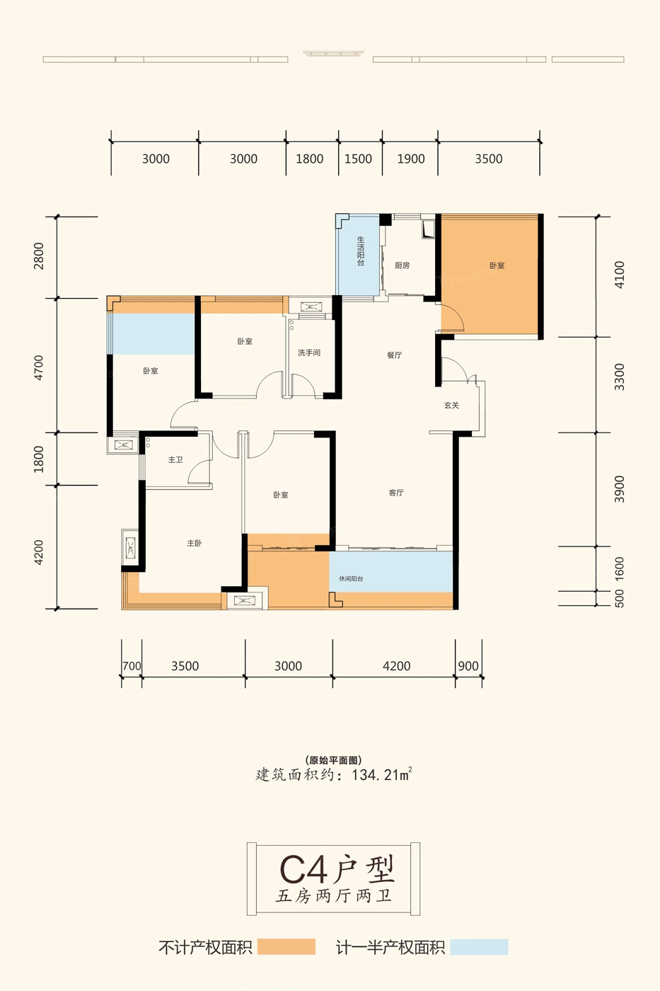 5室2厅2卫承龙大名城 平层户型·建面/134㎡