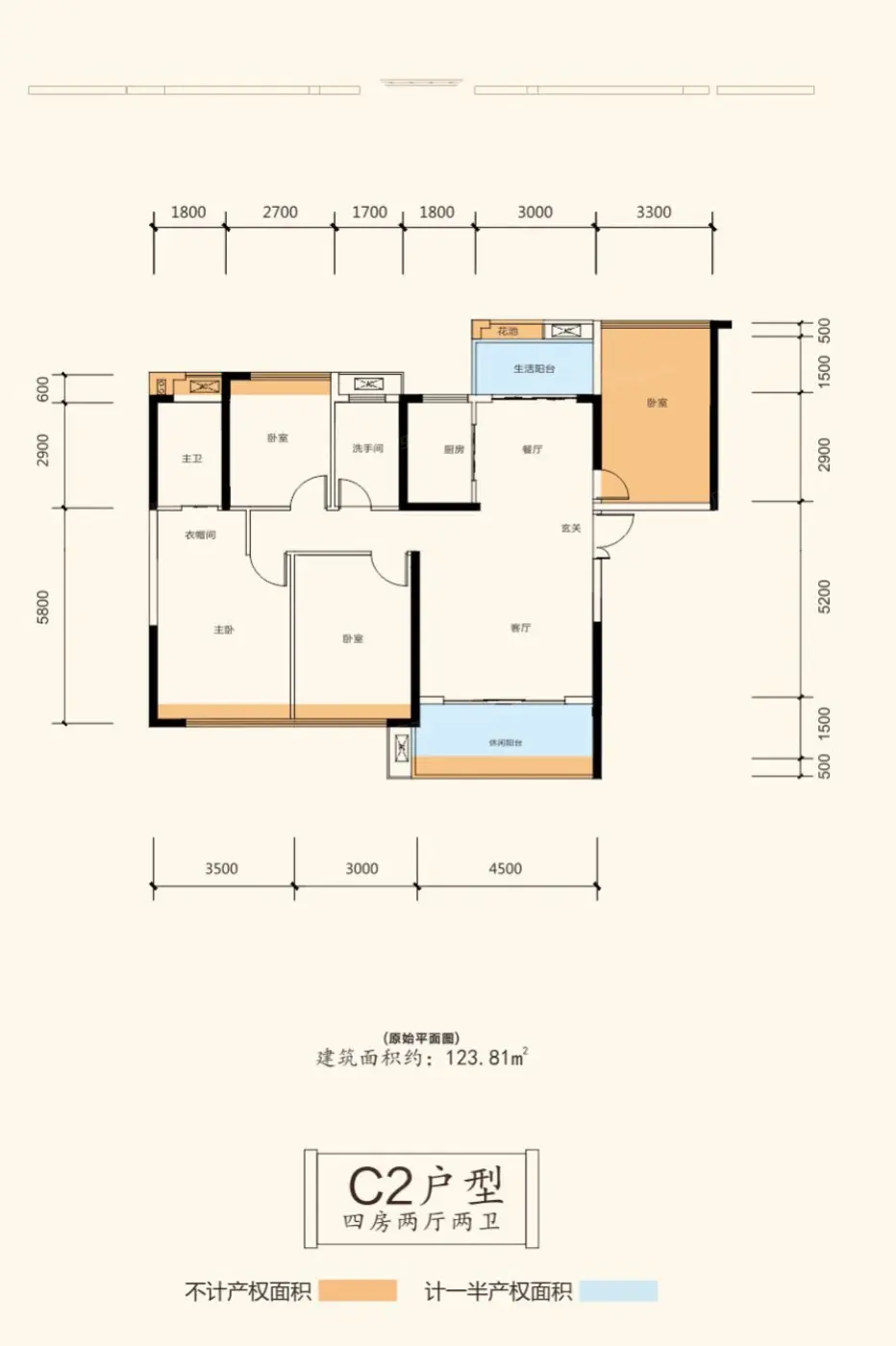 4室2厅2卫承龙大名城 平层户型·建面/123㎡