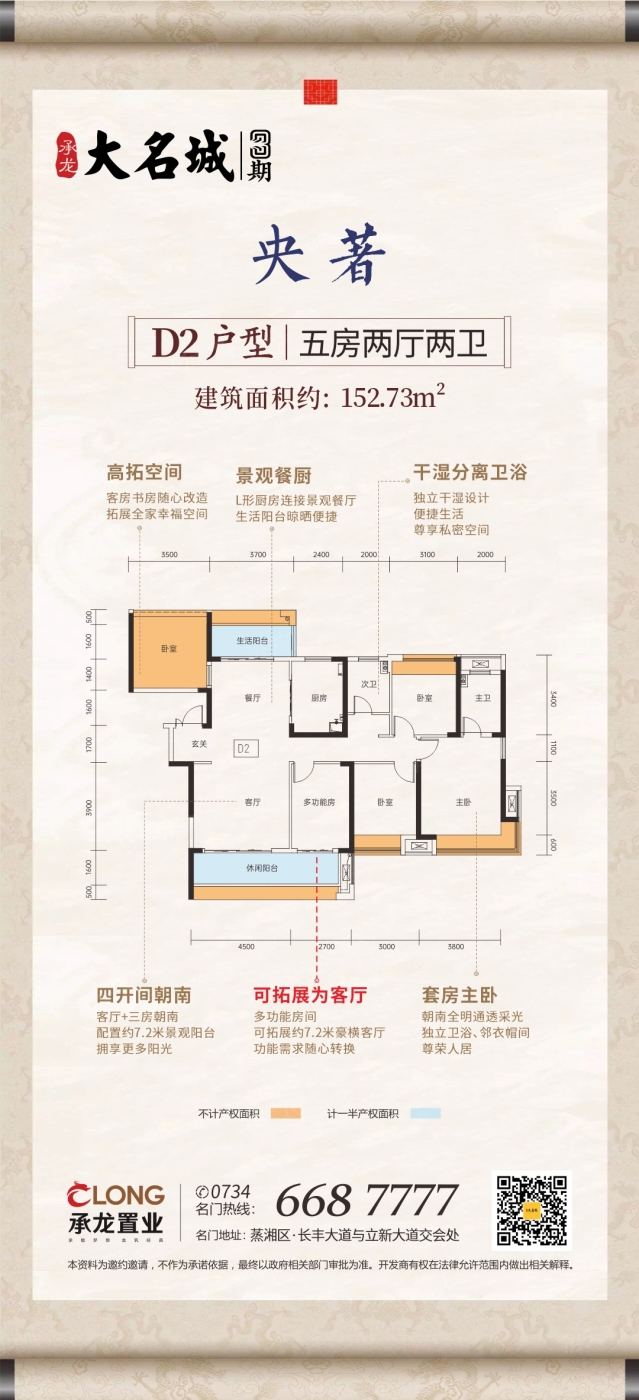 5室2厅2卫承龙大名城 平层户型·建面/152㎡