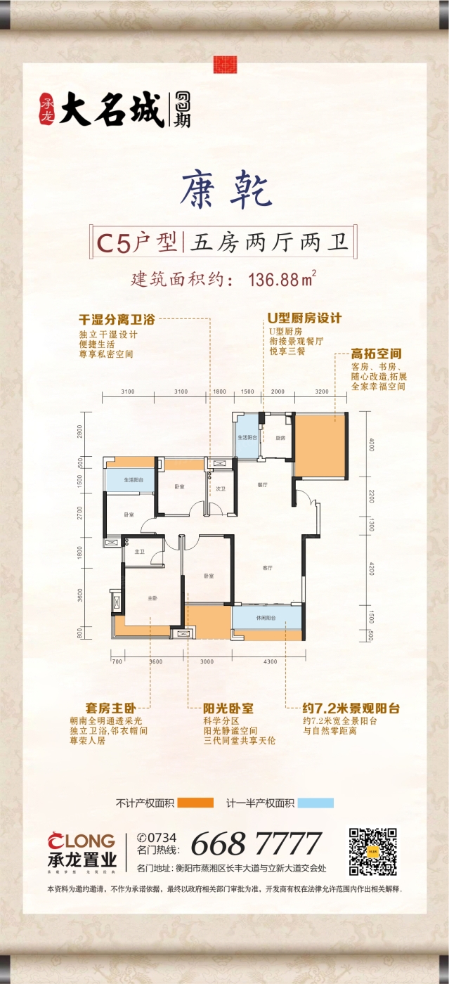 5室2厅2卫承龙大名城 平层户型·建面/136㎡