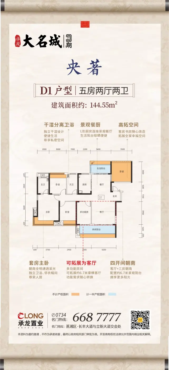 5室2厅2卫承龙大名城 平层户型·建面/144㎡